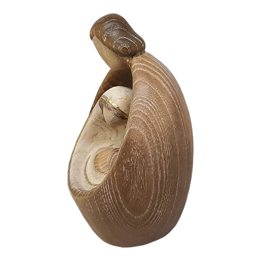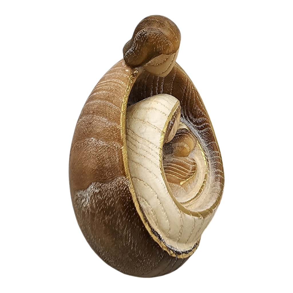 Presenting our beautifully crafted "Holy Family" nativity ornament, meticulously hand-carved from exquisite Ash wood in Italy. Standing at an impressive 4.5 inches tall, this stunning piece features an intricate depiction of Mary, Joseph, and Baby Jesus, capturing their serene and loving essence within a sleek, oval-shaped frame adorned with delicate golden accents.