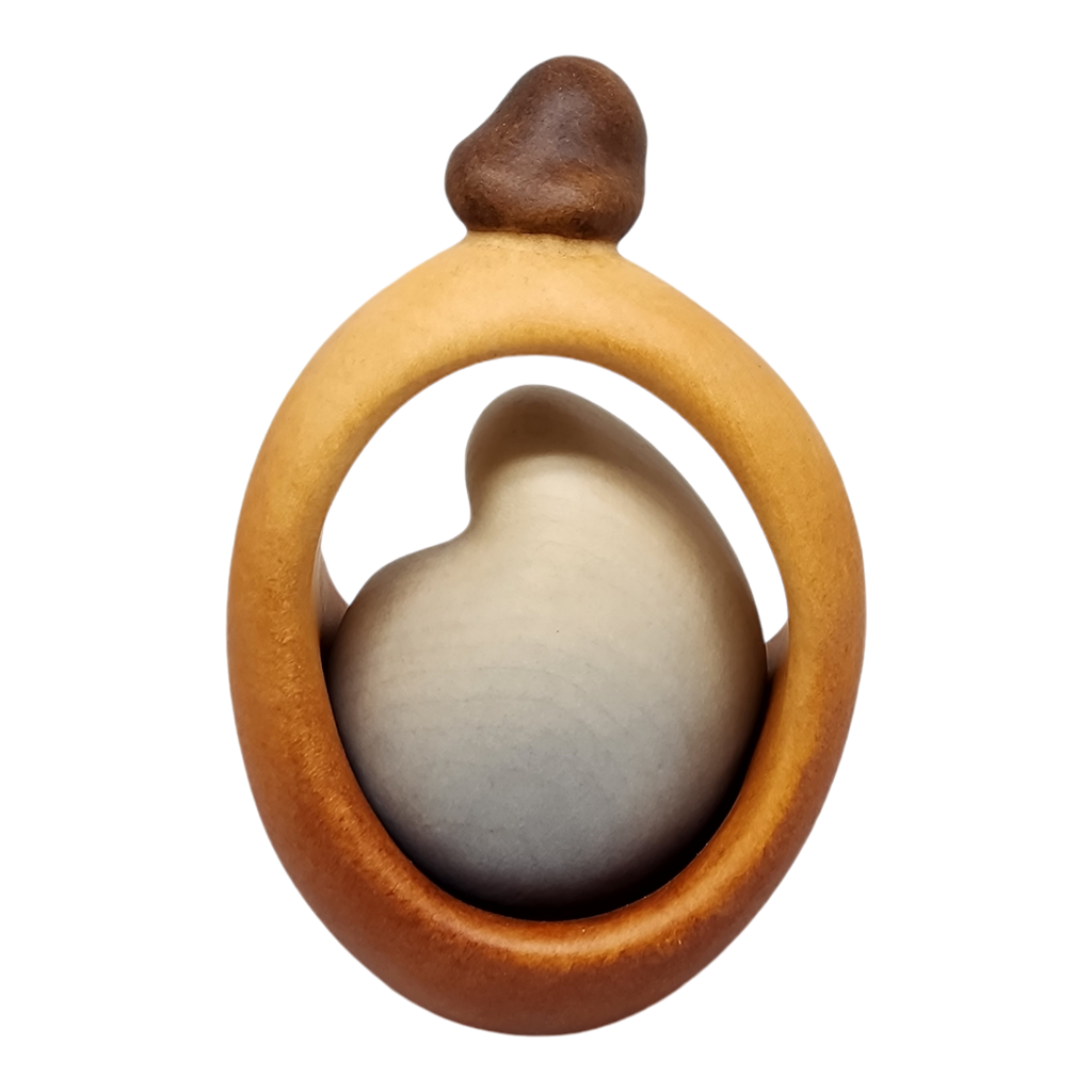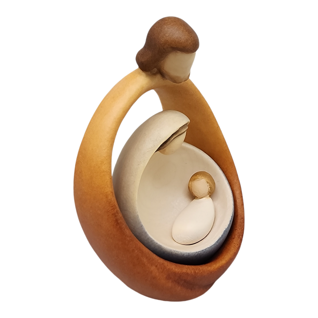 Presenting our exquisite hand-carved "Holy Family" nativity ornament, meticulously made in Italy and standing 6 inches tall. This stunning piece features the serene imagery of Mary, Joseph, and Baby Jesus, artistically enclosed within a graceful, oval-shaped wooden frame.