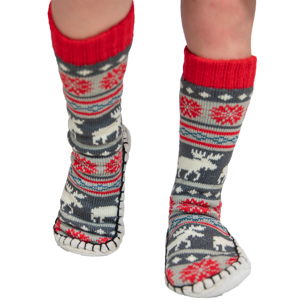 • Thick Acrylic Knit uppers that reach to mid-calf