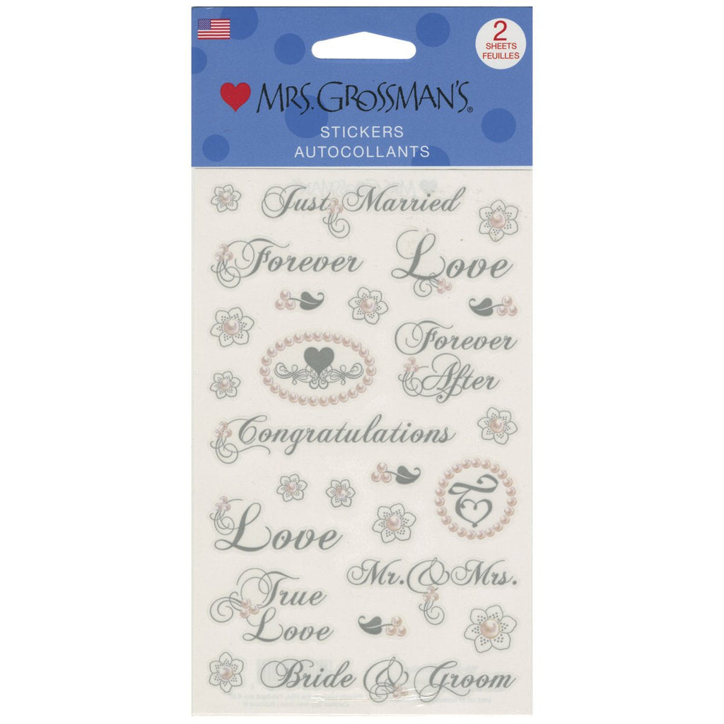Mrs. Grossman Foil Wedding Phrases Strip Stickers perfect for creating that very special Scrapbook or adding a special touch to the Engagement Party, Bridal Shower, and Wedding events