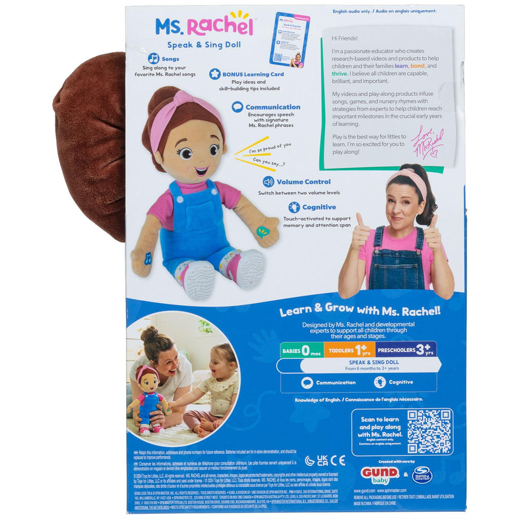 Crafted with love and attention to detail, the doll features bright and colorful attire—including overalls and a pink top—that captures the imagination of children. As part of her interactive abilities, the Ms. Rachel Speak and Sing Doll helps support early learning by fostering cognitive and communication skills. Designed for children aged 6 months and up, this plush toy is not only perfect for hugs but also serves as a great tool for developmental growth.