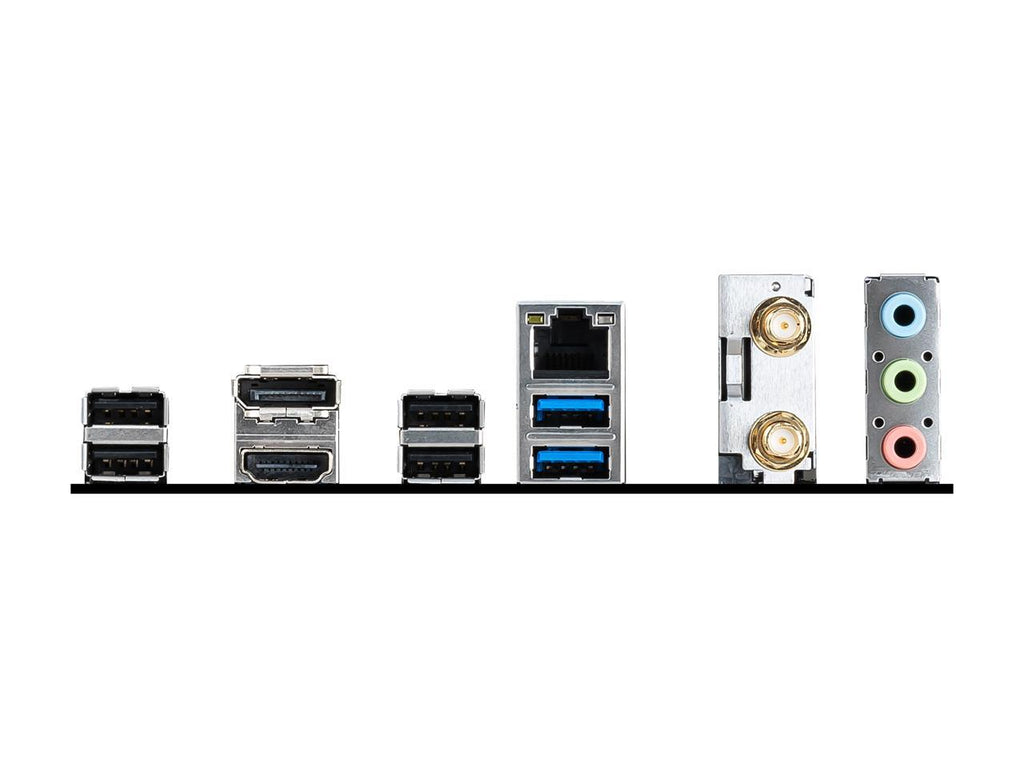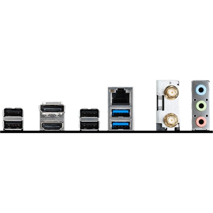 1 x DisplayPort 1 x HDMI 1 x LAN (RJ45) 2 x Antenna Bracket 2 x USB 3.2 Gen 1 Type-A 4 x USB 2.0/1.1 3 x Audio Jacks |