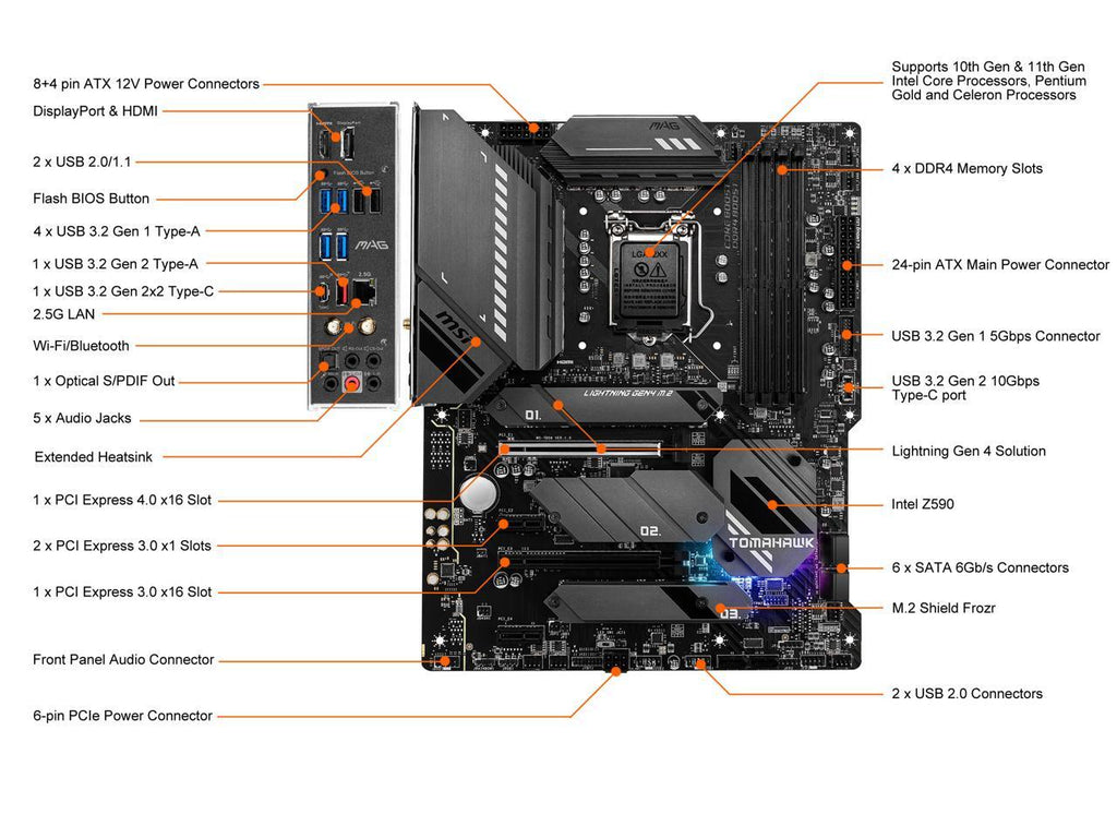 MAG Z590 TOMAHAWK WIFI features onboard 2.5Gbps Ethernet LAN, for gamers who demand high-bandwidth and low-latency network connectivity. Prioritize latency-sensitive applications with MSI LAN Manager for a superior online experience.
