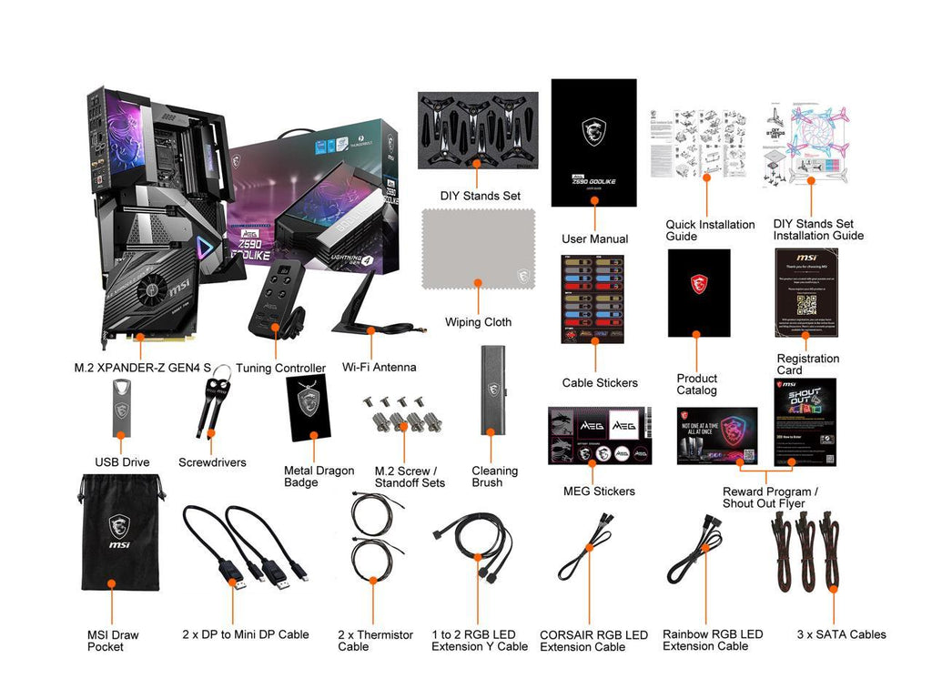MEG Z590 GODLIKE features four onboard M.2 connectors for high-speed SSDs. Prevent SSD thermal throttling with a double-sided sandwiching thermal design that includes a heatsink that extends across the motherboard.