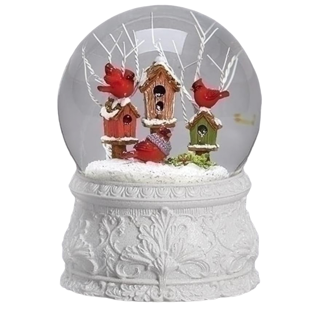 Beautiful Snowglobe with a Cardinal and Birdhouse scene within.