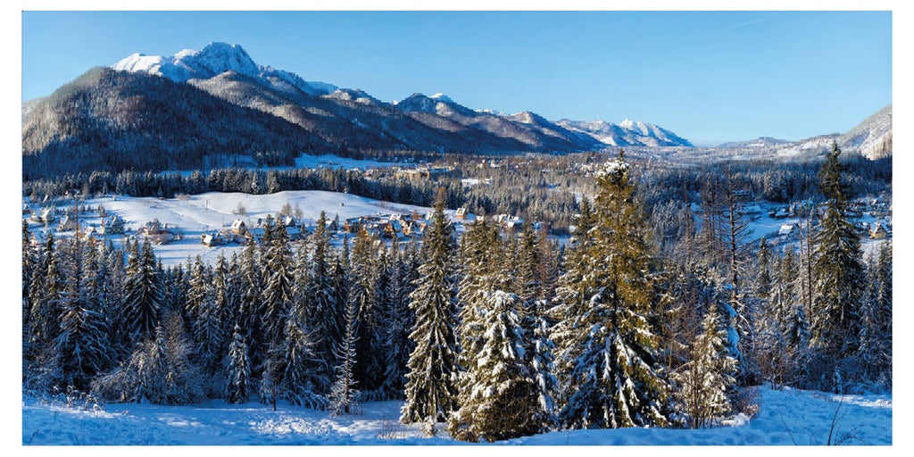 Immerse yourself in the breathtaking beauty of a winter wonderland with this expansive My Village Background Cloth. Measuring a whopping 118 inches by 59 inches, this stunning backdrop transports you to a serene village nestled amidst snow-dusted pine trees and majestic mountain ranges. The panoramic view captures the essence of a tranquil, snow-clad landscape, making it the perfect setting for your festive village displays or holiday gatherings.