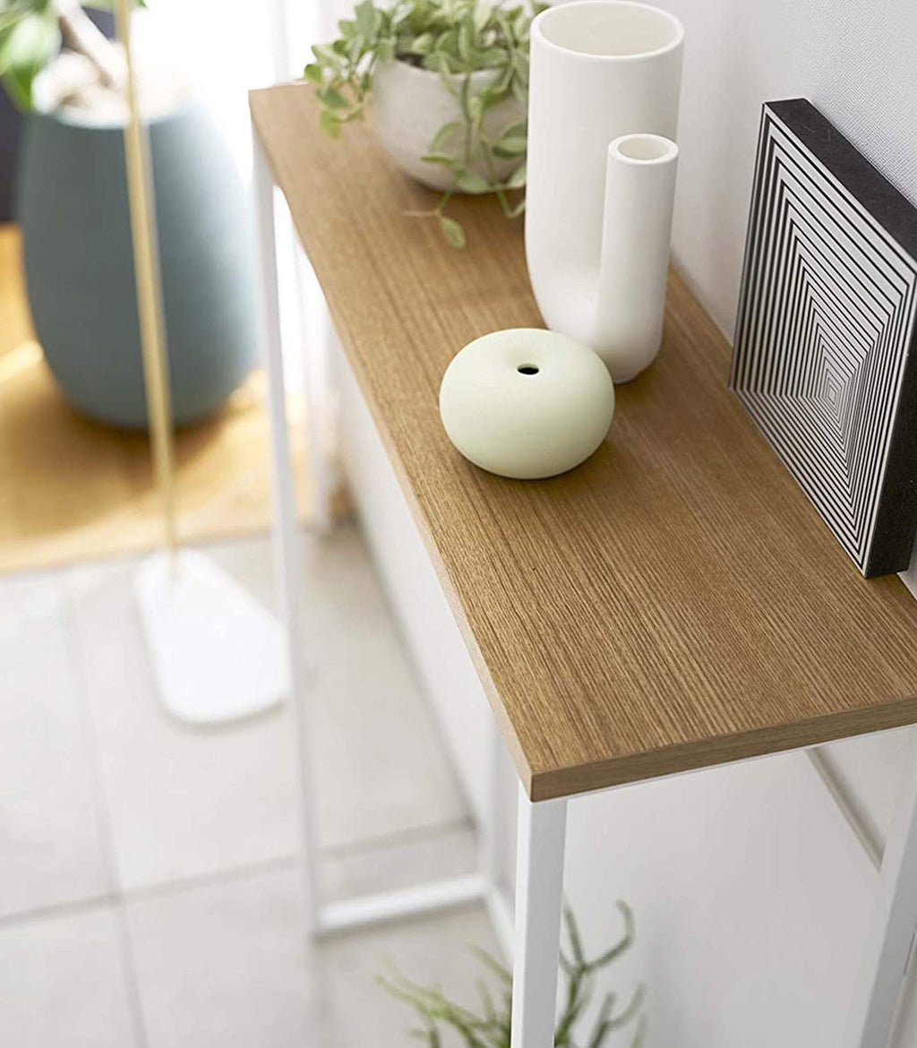 Bring a touch of style and elegance to the narrowest of entryways. If your entryway is less than spacious, but you still could use some organization, try out this entryway organizer. Hang umbrellas using the provided hooks along the frame's edge, while still having room for a key tray or knick-knack.