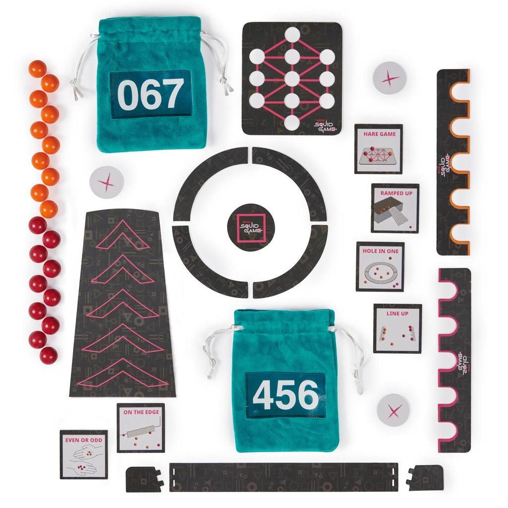 - SQUID GAME MARBLES: Play 6 exclusive marble challenges inspired by the jaw-dropping Netflix show. Choose from games in easy, medium, or hard levels. Perfect for parties- adult games for game night, board games for adults & more.