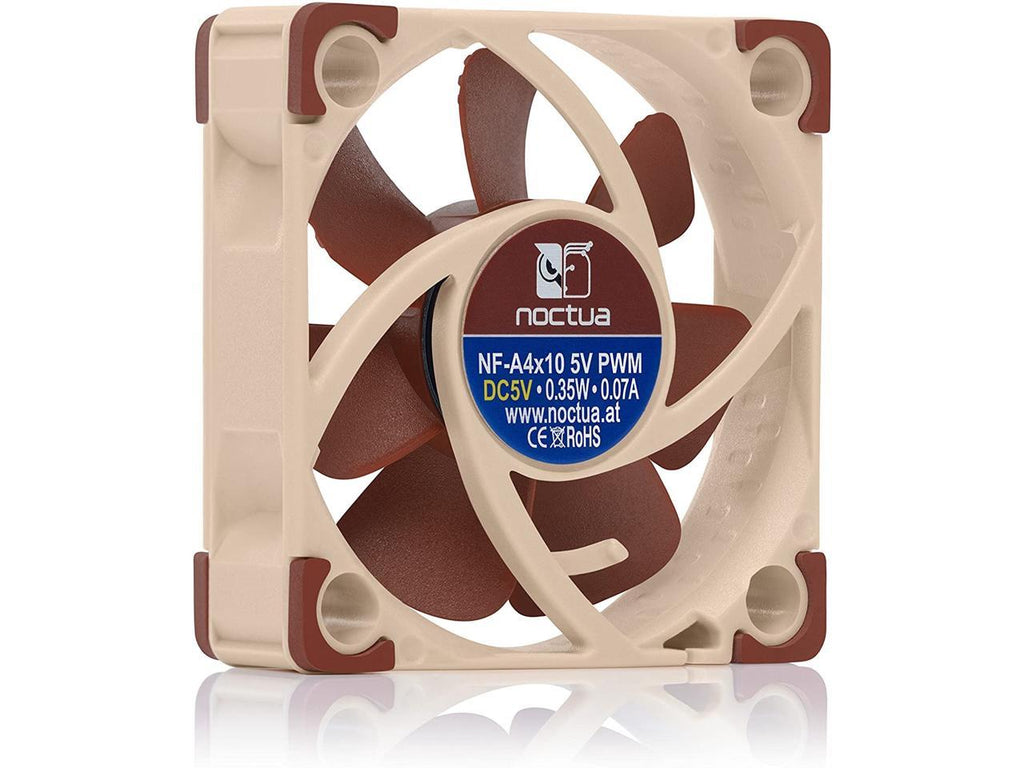Featuring advanced aerodynamic design measures such as Flow Acceleration Channels and an AAO frame, the NF-A4x10 5V PWM is a PWM enabled 5V variant of Noctua’s award-winning, premium quality quiet 40x10mm fan. The custom designed NE-FD3 PWM IC that integrates Smooth Commutation Drive technology and Noctua’s reference class SSO2 bearings guarantee superb running smoothness and excellent long-term stability. Topped off with modular cabling, the OmniJoin™ Adaptor Set Adaptor Set and 6 years manufacturer’s warranty, the NF-A4x10 5V PWM is a premium choice for demanding 5V applications that require PWM control.