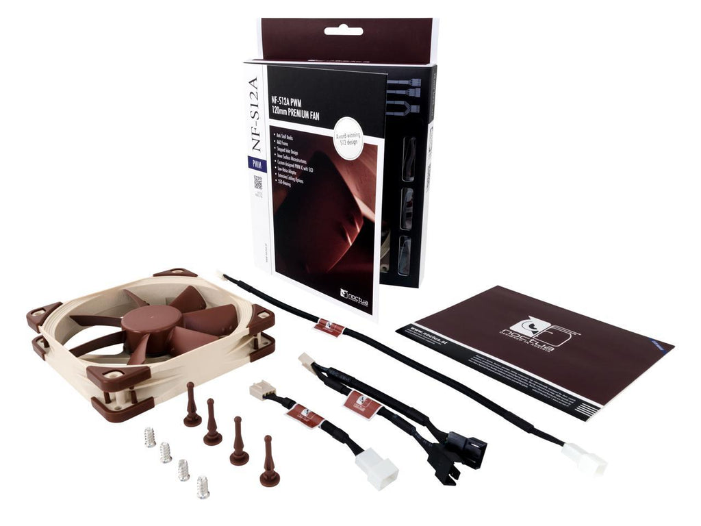 The NF-S12A marks the third generation of Noctua’s signature S12 series quiet case fans, which have received more than 250 awards and recommendations from the international press. Featuring a further refined blade design with Anti-Stall Knobs that works in tandem with the new AAO (Advanced Acoustic Optimisation) frame, the NF-S12A improves the airflow/noise efficiency of its renowned predecessor by up to 8%. The PWM version sports Noctua’s custom designed NE-FD1 IC for fully automatic speed control via 4-pin fan headers and comes with a Low-Noise-Adaptor to reduce the maximum speed during PWM control from 1200 to 900rpm. Its superb running smoothness, SSO2 bearing and Noctua’s trusted premium quality make it an elite choice for quiet case cooling.