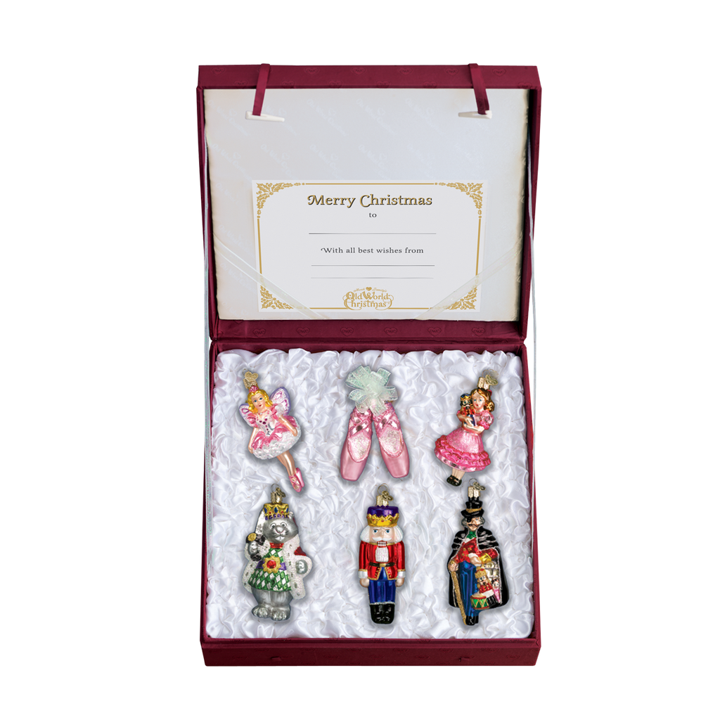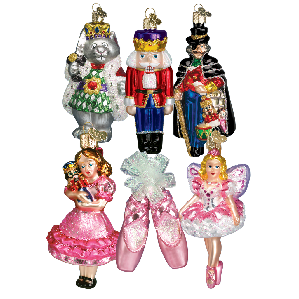 Browse the Complete Gifts & Holiday Collection Relive the magic of the Nutcracker Suite every Christmas with our blown glass ornament collection, which includes: Sugar Plum Fairy, Pair of Ballet Slippers, Clara, Mouse King, Nutcracker Prince and Drosselmayer. Each collection is packaged in a keepsake box, which is great for storage. Our Nutcracker Suite Collection makes a memorable gift for all the children in your life.