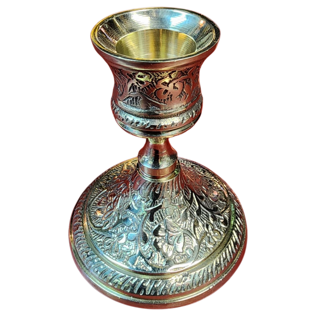 Elevate your home decor with our stunning Ornate Brass Taper Candle Holder! This beautifully crafted piece features an intricate design that exudes classic elegance, making it a perfect complement to any setting. Standing at 3 ¾ inches tall, this holder is designed to accommodate standard taper candles, allowing you to create a sophisticated atmosphere for romantic dinners, special occasions, or everyday use.