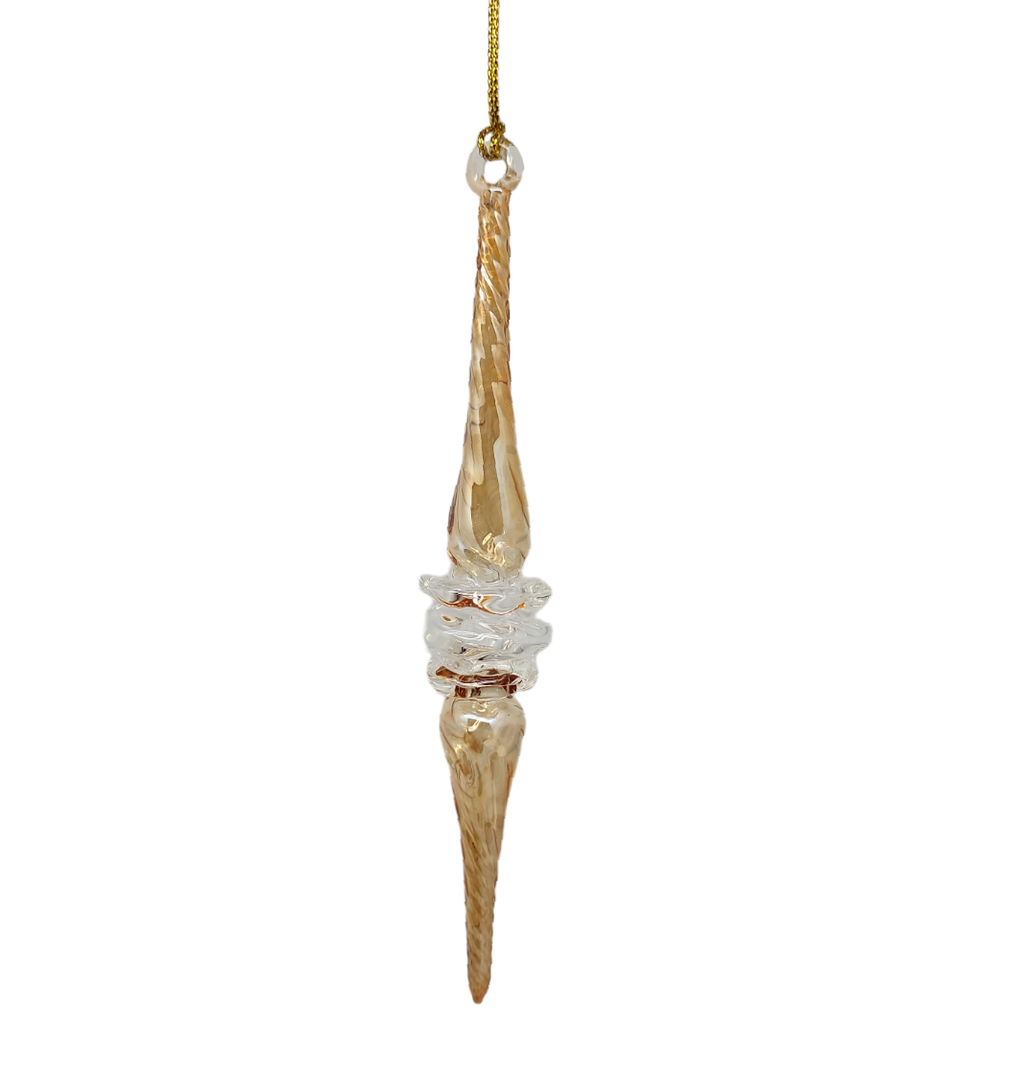Outer Swirl Icicle Glass Ornaments - Gold - Clear Center