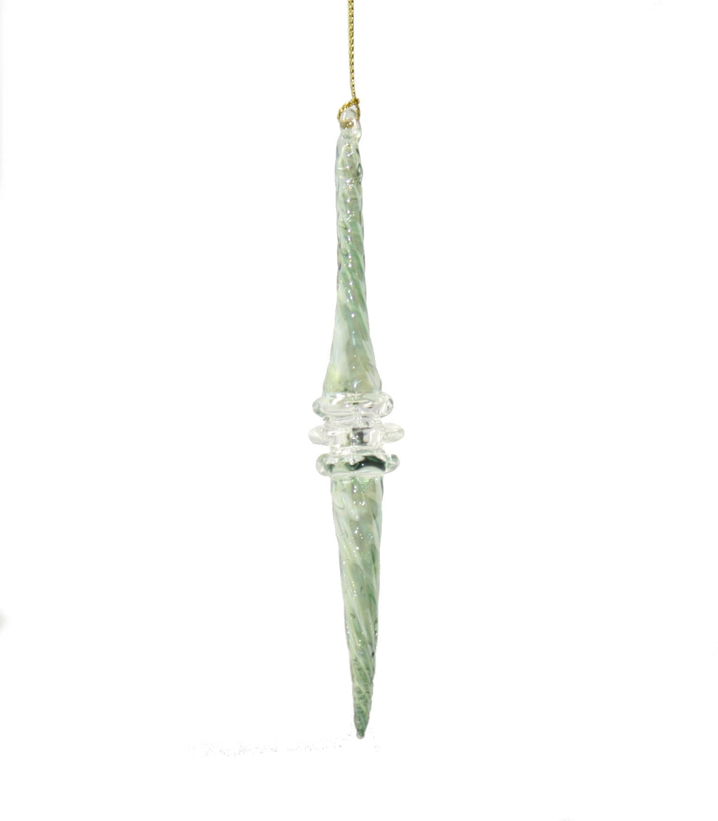 Outer Swirl Icicle Glass Ornaments - Green - Clear Center