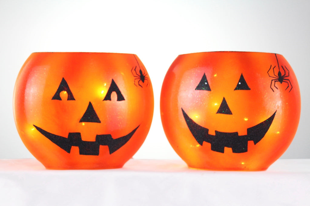 Oval Lighted Jack-o-Lantern Vase - 7 x 4 x 6.5 - 5 Teeth