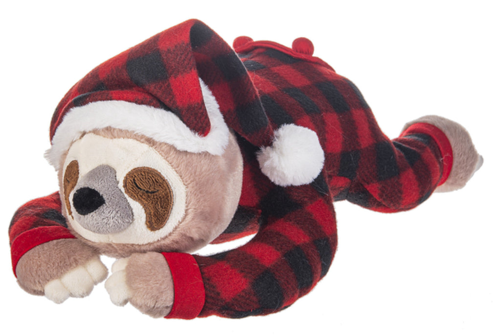 This adorable Sloth is all decked out in his Holiday PJ's while he stretches out and relaxes.