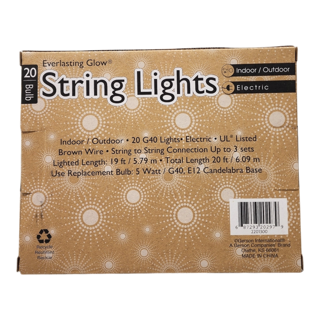 Set the mood for your holiday celebrations with our stunning 20 Count G40 String Light Set! Featuring charming clear bulbs on a stylish brown wire, these versatile lights are perfect for both indoor and outdoor settings, adding a festive touch to any space. Whether you’re illuminating your beautiful Christmas tree or creating a cozy outdoor atmosphere for guest gatherings, these lights will create a warm, inviting glow reminiscent of a tranquil Vermont evening.
