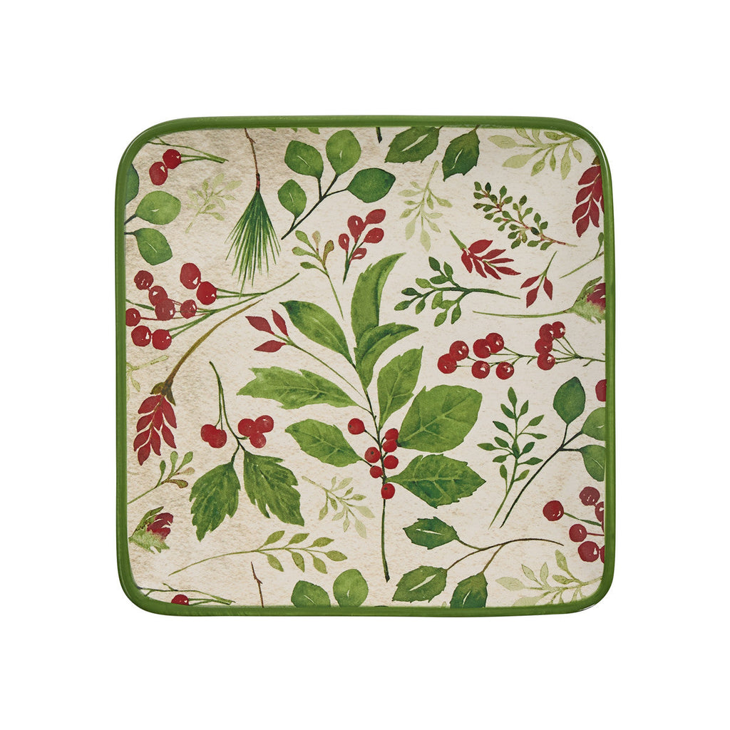 This beautiful art by Andrea Tachiera ushers in the holiday season with festive seasonal greenery printed on this small plate. Ideal for appetizers, cookies, candies and more