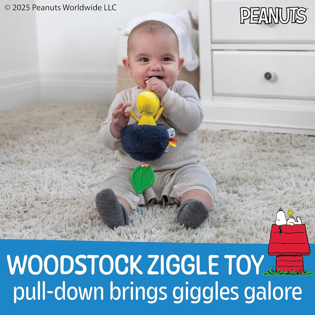 Introduce your little one to the delightful world of Peanuts with the Woodstock Baby Pulldown Ziggle Sensory Toy! This charming plush toy, standing at an engaging 12 inches tall, features Woodstock, Charlie Brown's beloved bird companion. Designed for interactive play, this toy is perfect for babies and toddlers, providing stimulating features that entertain and engage young minds.