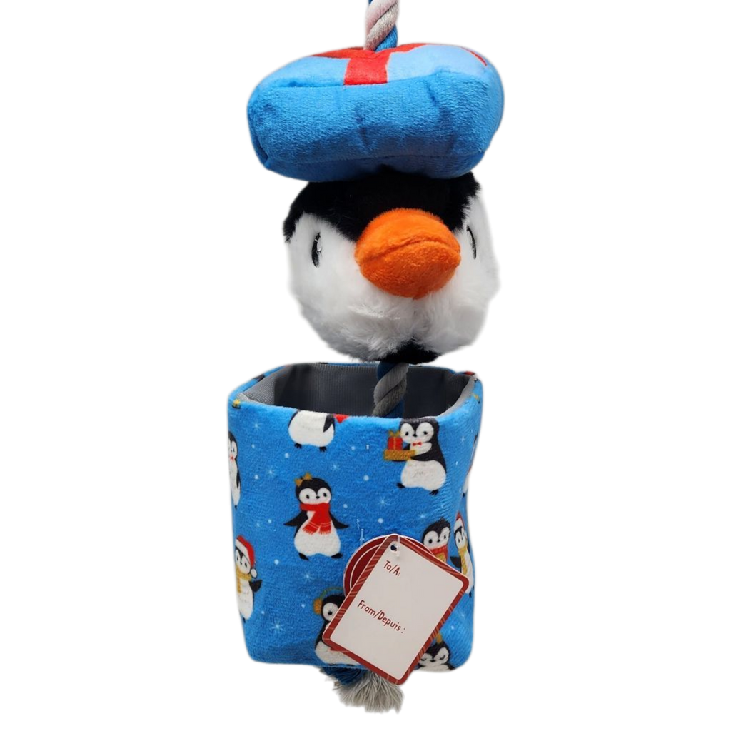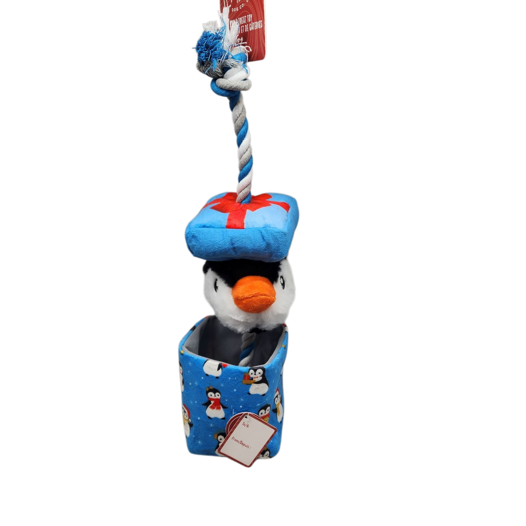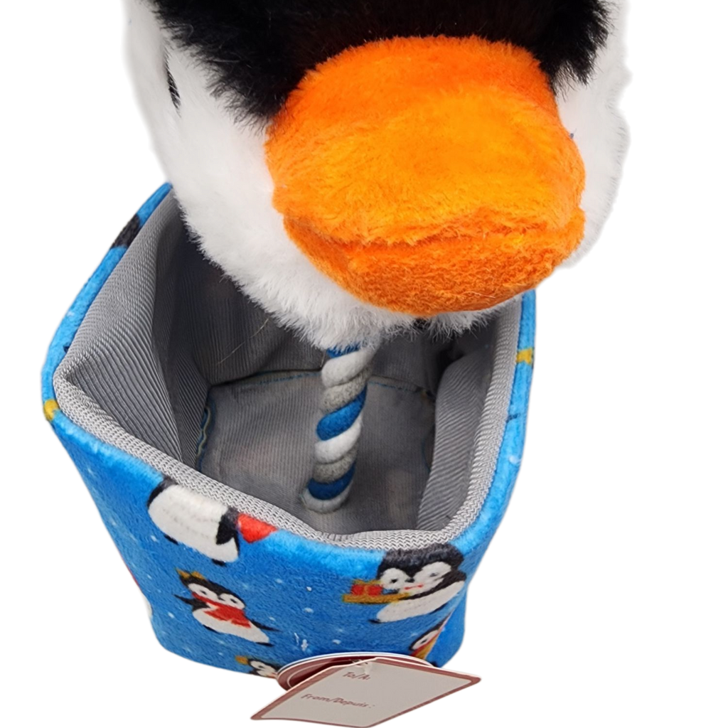 Keep your furry friend entertained and engaged with the Penguin Hide and Treat Tug Toy! Measuring 15 inches, this adorable toy is designed for interactive play, combining the fun of tugging with the thrill of discovery. Featuring a fluffy (squeaking) penguin head on top of a vibrant blue body adorned with cheerful penguin patterns, this delightful toy is sure to become your dog's new favorite companion!