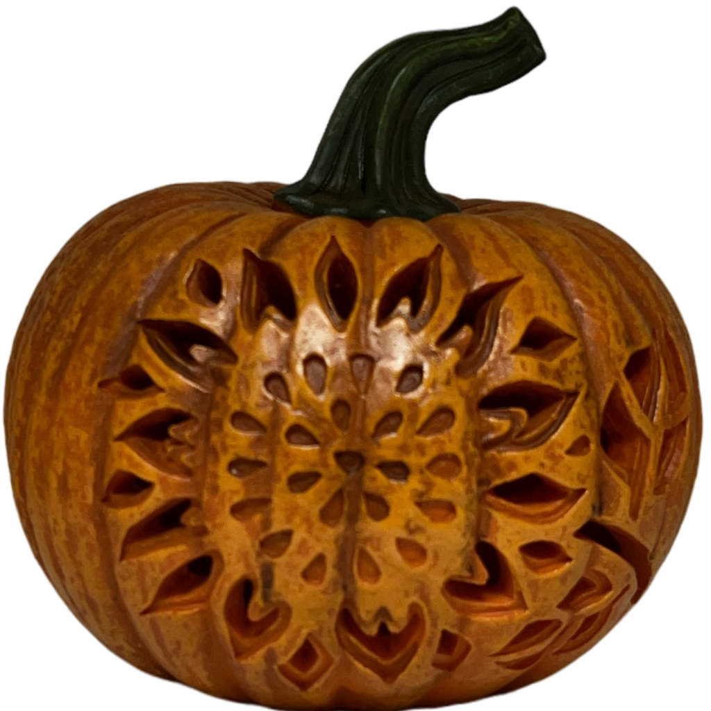 Add a touch of festive warmth to your fall décor with this charming 5-inch tall by 5 1/2-inch wide Resin Pumpkin. Perfect for autumn celebrations, this intricately designed pumpkin features a beautifully detailed sunflower pattern, making it a standout piece for both Halloween and Thanksgiving.