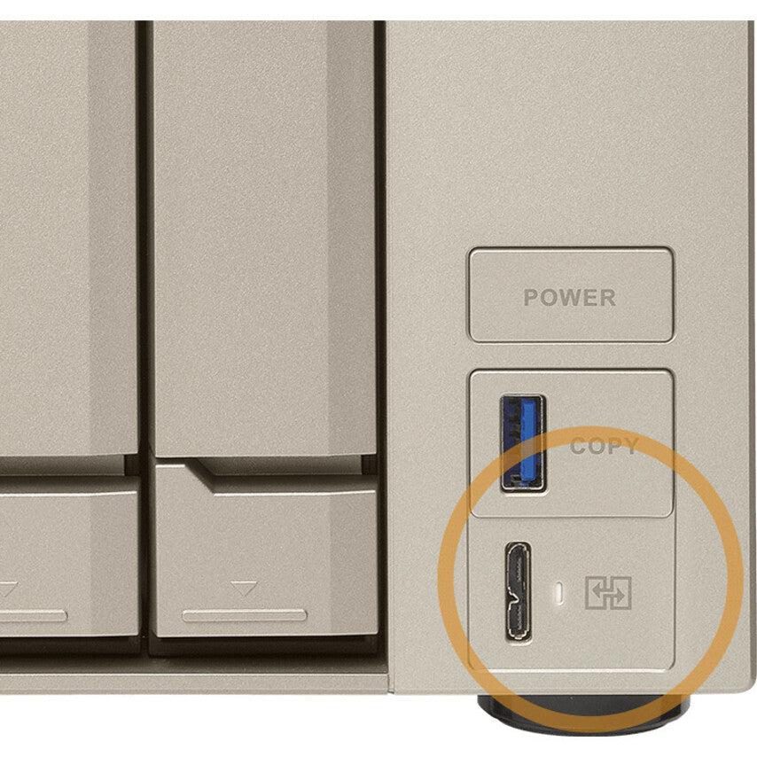The TVS-673e is powered by a high-end AMD R-Series APU that incorporates an exceptional CPU with AMD Radeon™ R7 Graphics performance, delivering a high-performance and energy-efficient NAS solution. Built with a state-of-the-art metal design and topped off with a stylish gold finish, the highly-capable TVS-673e provides PCIe expandability, the unique USB QuickAccess port, HDMI 4K@ 30Hz output, and 4K H.264 video decoding and encoding acceleration for an optimum audiovisual experience.