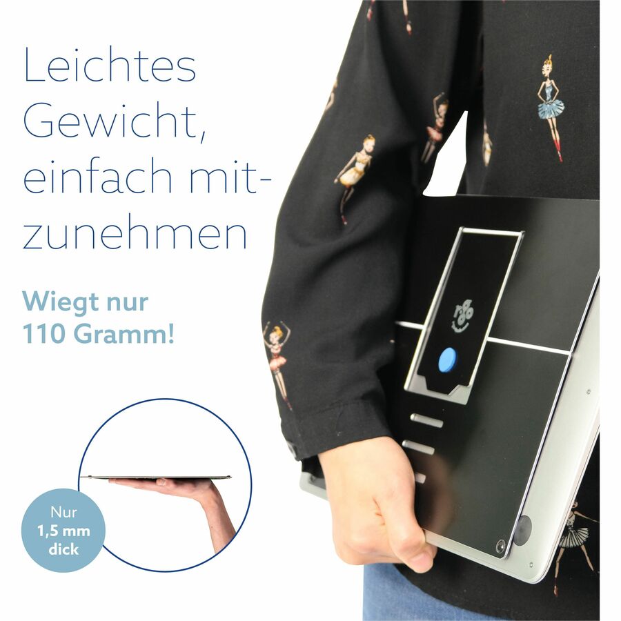 The R-Go Riser Attachable Laptop Stand is an ergonomic addition to your laptop. This laptop stand is made of aircraft aluminium and is only 1.2 mm thick. It sets your laptop to the desired height.