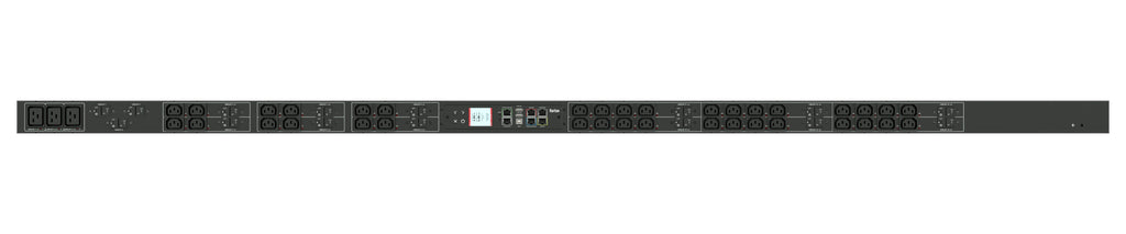 Monitored rack power distribution unit for data centers. 57.5kVA 3-phase PDU with intelligent power monitoring and vertical mount design.