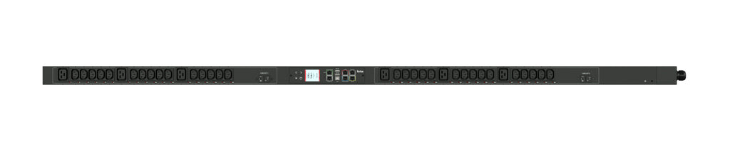 Monitored and switched rack power distribution unit (0U [vertical], 5kVA, 36 outlets). INPUT: 208v, 30a - NEMA L6-30P plug (2P3W); OUTPUT: 30@ C13, 6@ C19 outlets; on 2@ 2-pole, 20a Overcurrent Protectors; FEATURES: Billing-Grade (+/- 1%) Energy Metering [kW, kVA, V, A, Power Factor] - per inlet, per breaker/fuse, per outlet; Remote network monitoring via HTML, JSON-RPC, SSH, Telnet, MODBUS/TCP, and SNMPv3. Onboard embedded processor with minimum 536MHz clock speed, 16MB SPI Flash, and 64MB DDR2 RAM. Cascading upto 16 PDU's using single Ethernet or USB connection. Environmental monitoring [temp/humidity] capable – up to 32 sensors. Individual outlet numbers labeled on chassis. Automated deployment via TFTP, DHCP, SSH(CLI), or USB Flash Drives. WiFi Capable. USB Webcam Capable. iPad/iPhone/Android App. Dual 10/100/1000 Ethernet port. Tri-color status LED per receptacle. Breaker metering and alarming (0V detection). Max Dimensions 52mm x 65mm x 1780mm (2.1in x 2.6in x 70.1in). Max Weight 6.5 kg. Maximum ambient temperature 60C at full load.