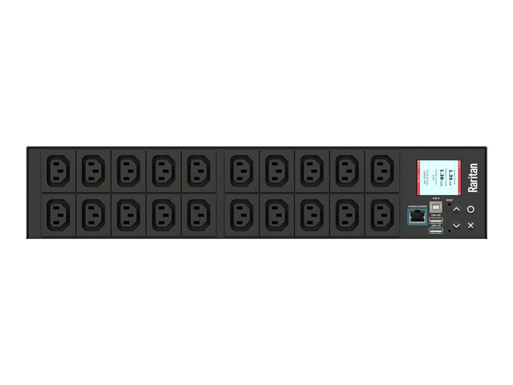 Raritan PX3-5434R-A2 - Power distribution unit (rack-mountable) - AC 208 V - 3300 VA - 1-phase - Ethernet 10/100, RS-232, USB, Ethernet 10/100/1000 - input: IEC 60320 C20 - output connectors: 20 (20 x IEC 60320 C13) - 2U - 6.6 ft cord - black powder coat