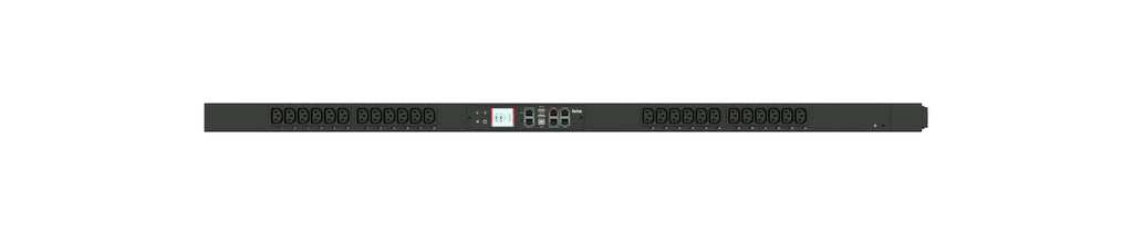 Monitored and switched rack power distribution unit (0U [vertical], 1.9kVA, 24 outlets). INPUT: 120v, 20a - NEMA L5-20P plug (2P3W); OUTPUT: 24@ C13 outlets; FEATURES: Billing-Grade (+/- 1%) Energy Metering [kW, kVA, V, A, Power Factor] - per inlet, per outlet; Remote network monitoring via HTML, JSON-RPC, SSH, Telnet, MODBUS/TCP, and SNMPv3. Onboard embedded processor with minimum 536MHz clock speed, 16MB SPI Flash, and 64MB DDR2 RAM. Cascading upto 16 PDU's using single Ethernet or USB connection. Environmental monitoring [temp/humidity] capable – up to 32 sensors. Individual outlet numbers labeled on chassis. Automated deployment via TFTP, DHCP, SSH(CLI), or USB Flash Drives. WiFi Capable. USB Webcam Capable. iPad/iPhone/Android App. Dual 10/100/1000 Ethernet port. Tri-color status LED per receptacle. Max Dimensions 52mm x 65mm x 1298mm (2.1in x 2.6in x 51.1in). Max Weight 4.6 kg. Maximum ambient temperature 60C at full load.