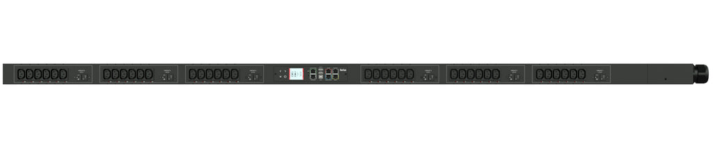 Monitored switched rack PDU with 0U 3-phase design and 17.3kVA capacity. Vertical power distribution unit with 36 outlets for data centers.