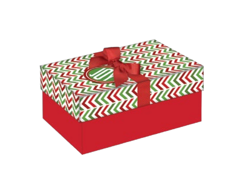 Solid gift box topped with ribbon bow and gift tag is easy to use. Just slide the top off, put your gift in and slide the top back on. Bow and gift tag will stay in place