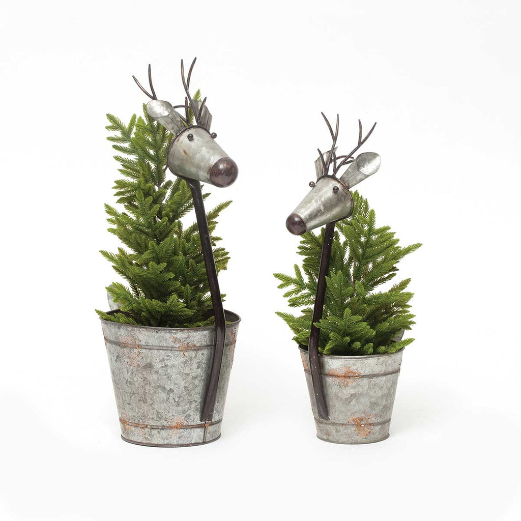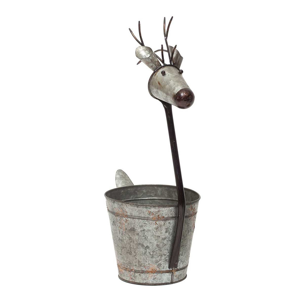It doesn't get any more Cute than this. Handcrafted from multiple reclaimed glavanzied Metal buckets, this reindeer is a great addition to your Holiday Decor.