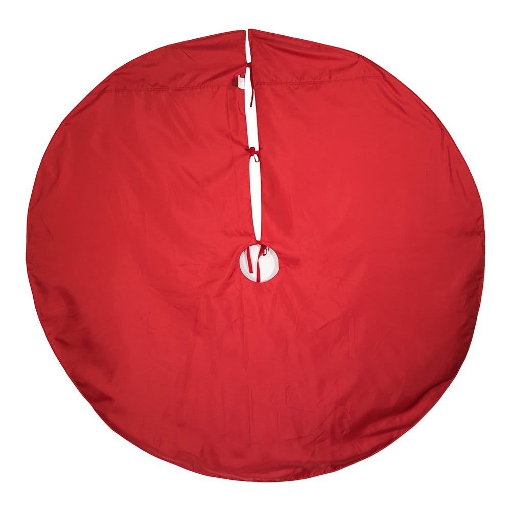 This Kurt Adler 60-Inch Red and Gold Sequin Embroidered Tree Skirt is an elegant way to add to any holiday décor or Christmas tree. This tree skirt is made of polyester and it features a red background with a beautiful pattern of gold sequined Christmas stocking designs and a smooth border.