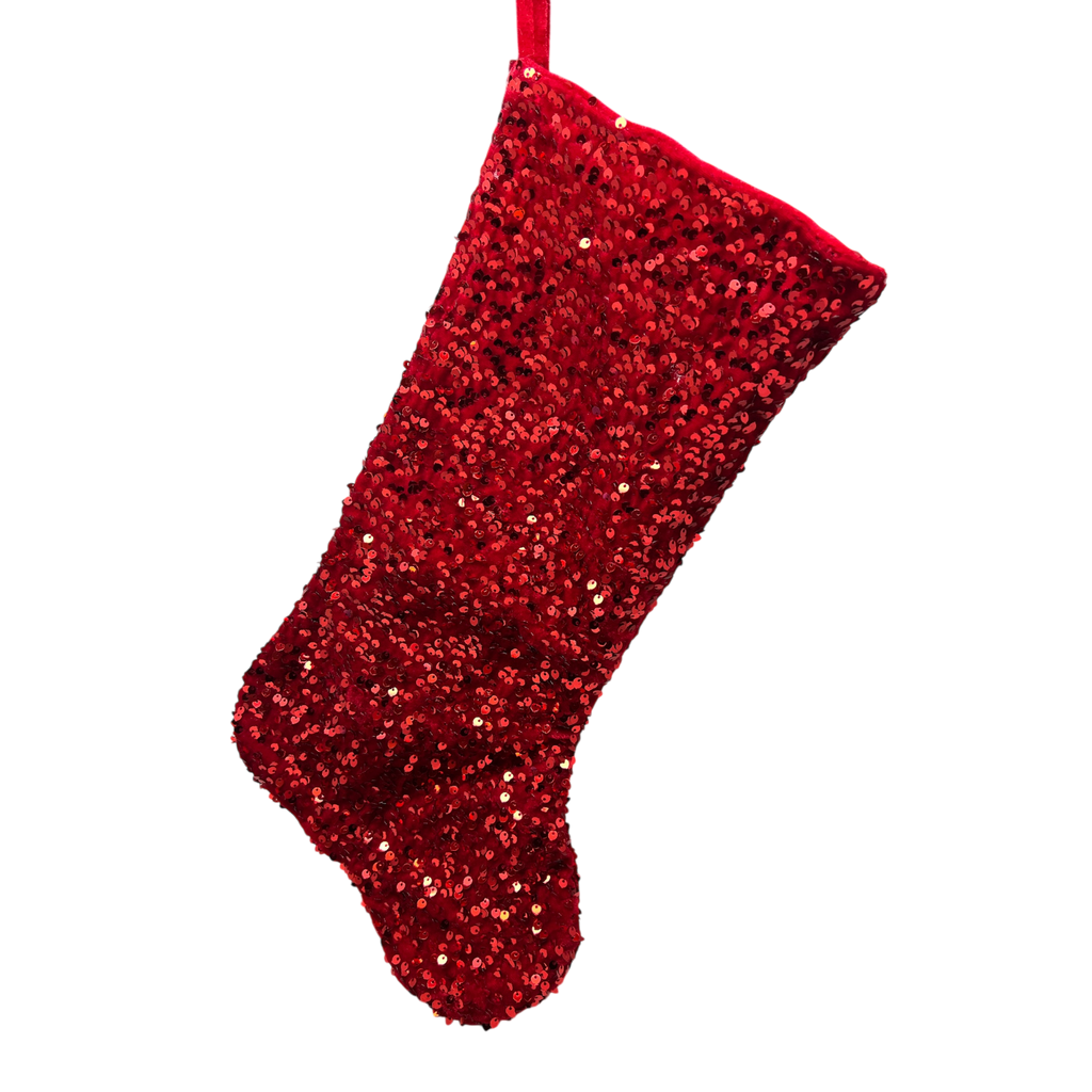 Prepare to dazzle this holiday season with our stunning 17-inch red sequin stocking! Crafted to catch the eye, this festive stocking is beautifully adorned with shimmering sequins that reflect light in a dazzling display, ensuring it stands out among your holiday decor. Perfect for hanging by the fireplace or on your favorite wall, this sparkling piece breathes joy and excitement into your holiday celebrations, enticing everyone to peek inside on Christmas morning!
