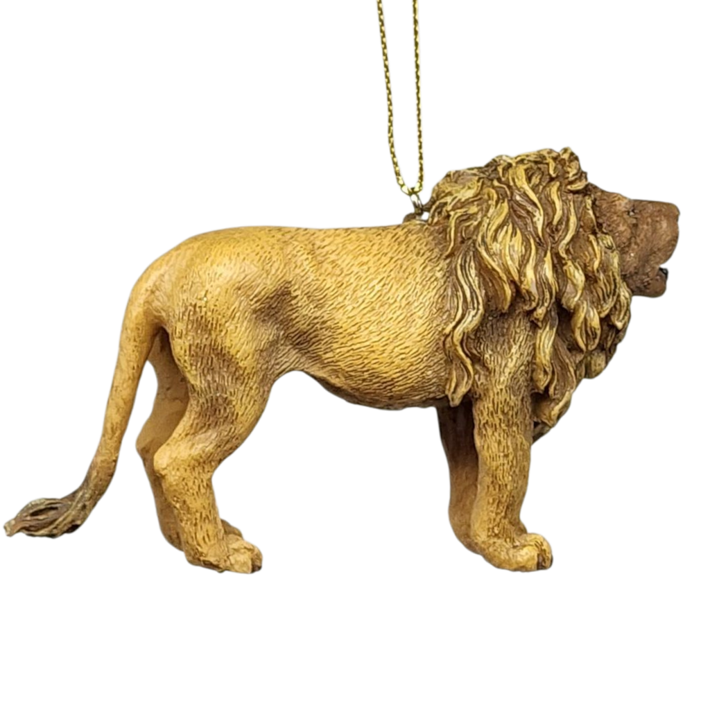 Bring the king of the jungle to your holiday décor with this beautifully detailed lion ornament. Crafted from resin and painted in warm, golden tones, the lion’s impressive mane and roaring expression capture the wild spirit and regal power that lions symbolize. This ornament reminds us why lions are often called the "king of beasts," representing courage and leadership—qualities that make a striking statement on any tree or decorative display.