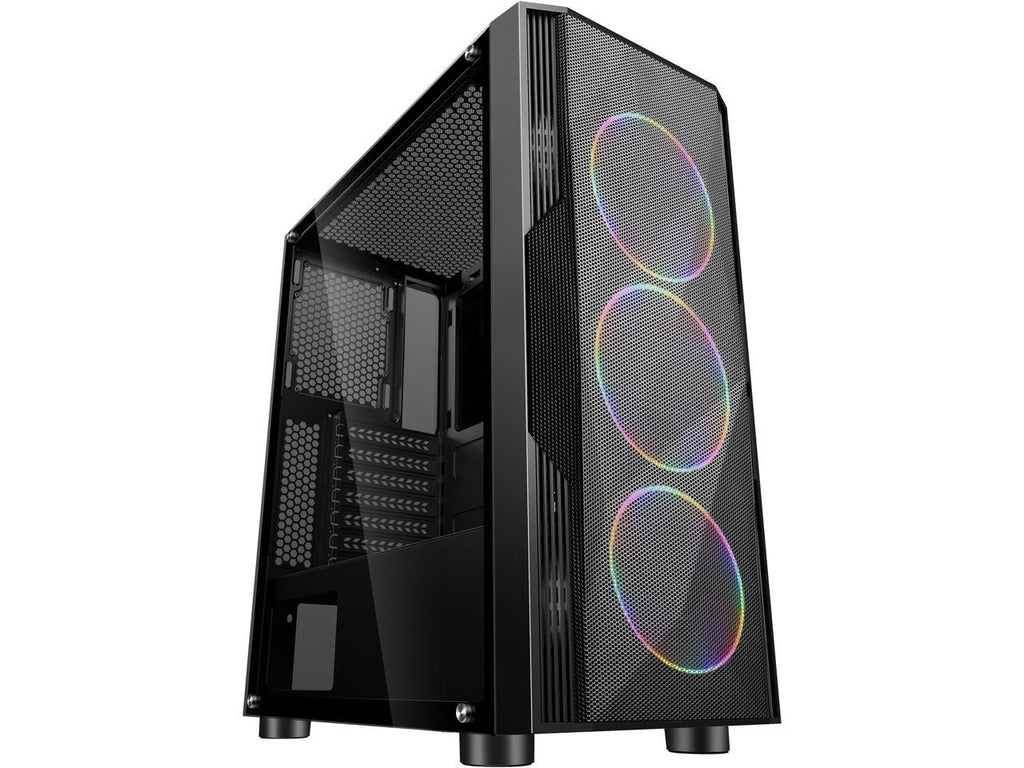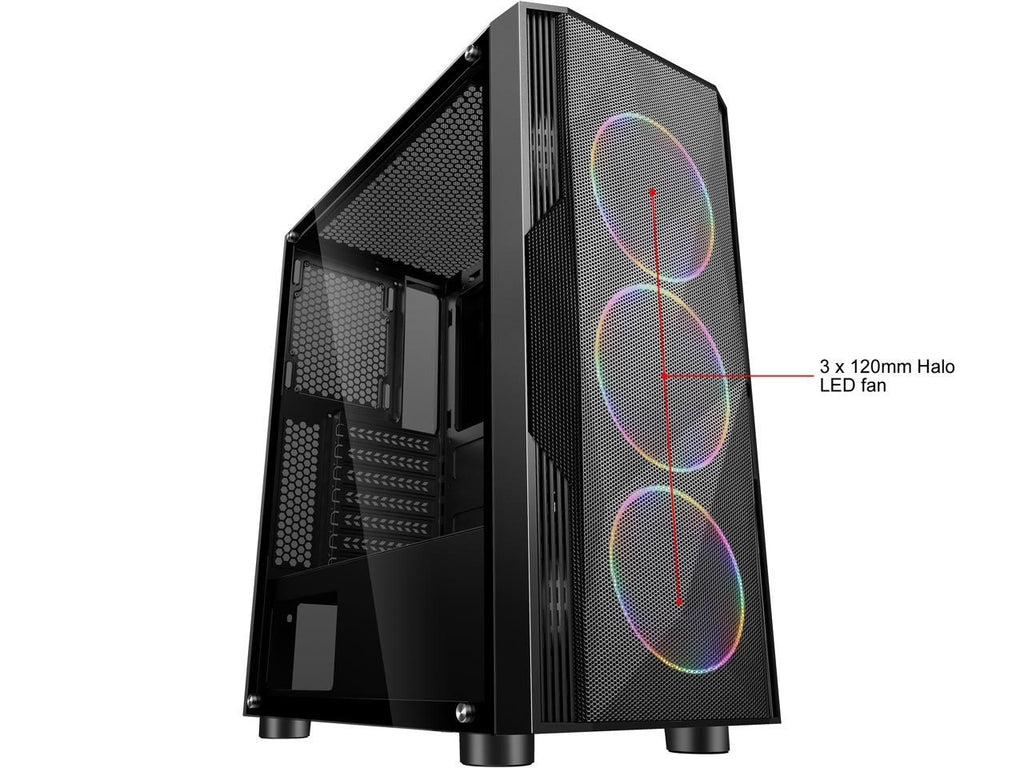 Three pre-installed 120mm halo ARGB LED ring fans at the front panel create a dynamic gaming ambience.