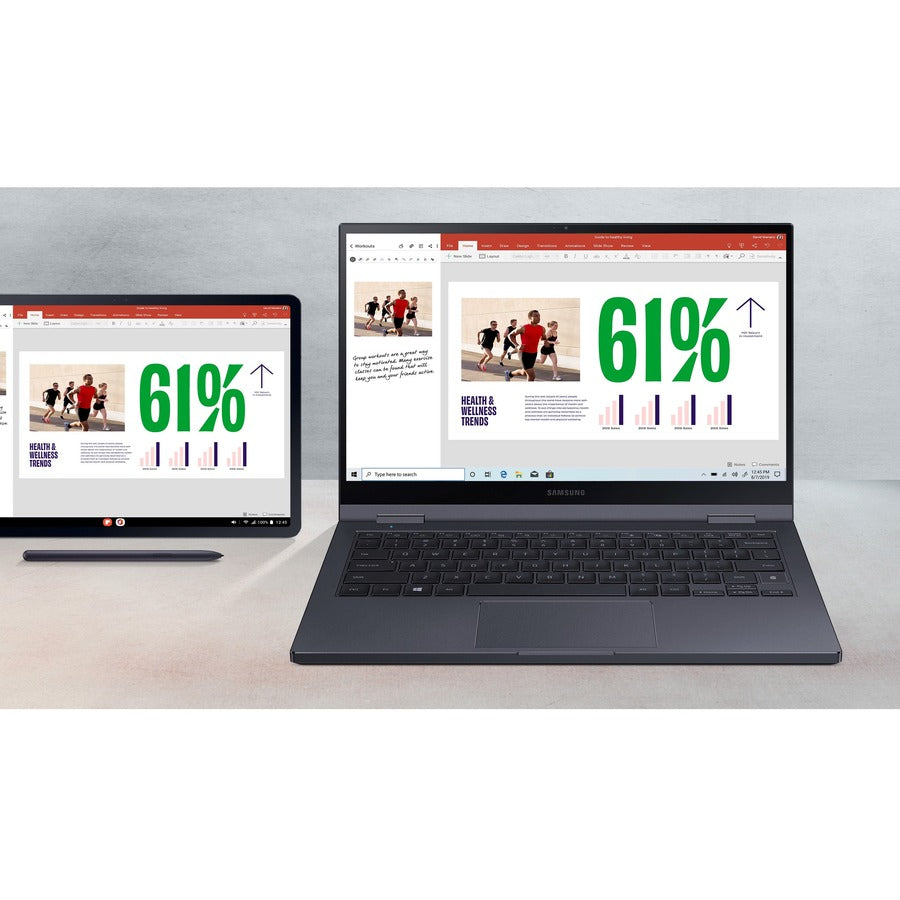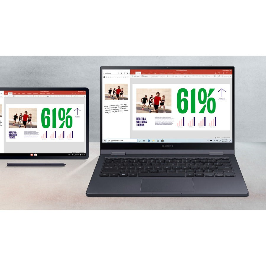 Streamline your daily to-dos with cross-device capabilities. Link Windows to your PC and phone to view mobile content or work in mobile apps on an edge-to-edge screen. Need more screen? Sync Galaxy Book Flex2 Alpha to your tablet for a second screen to optimize your viewing while knocking out your workload. Did your mom call during your meeting? No problem! Switch your audio with easy pairing capabilities, so you can go from conference call to family call in a click.