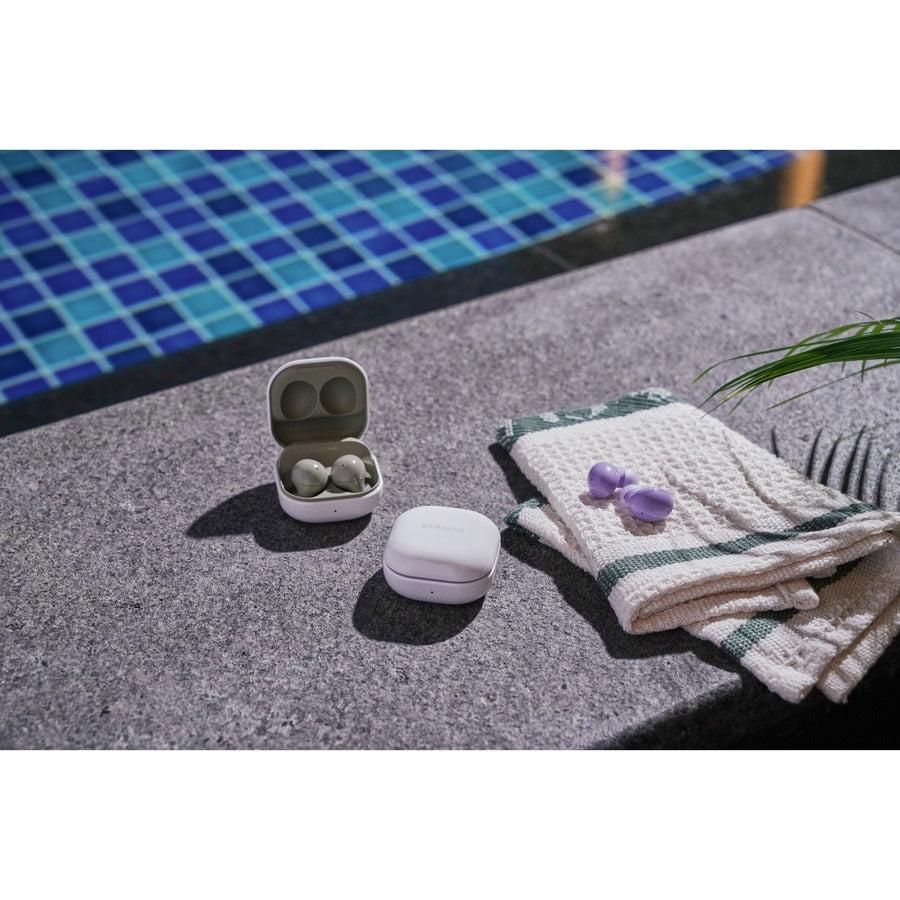 Get lost in what you love. Galaxy Buds2 opens a new world of sound with well-balanced audio, lightweight comfort fit, Active Noise Cancellation, and seamless connectivity to your phone and watch. Intuitive controls and powerful ANC keep you immersed when working out, gaming, or jamming to your beats.