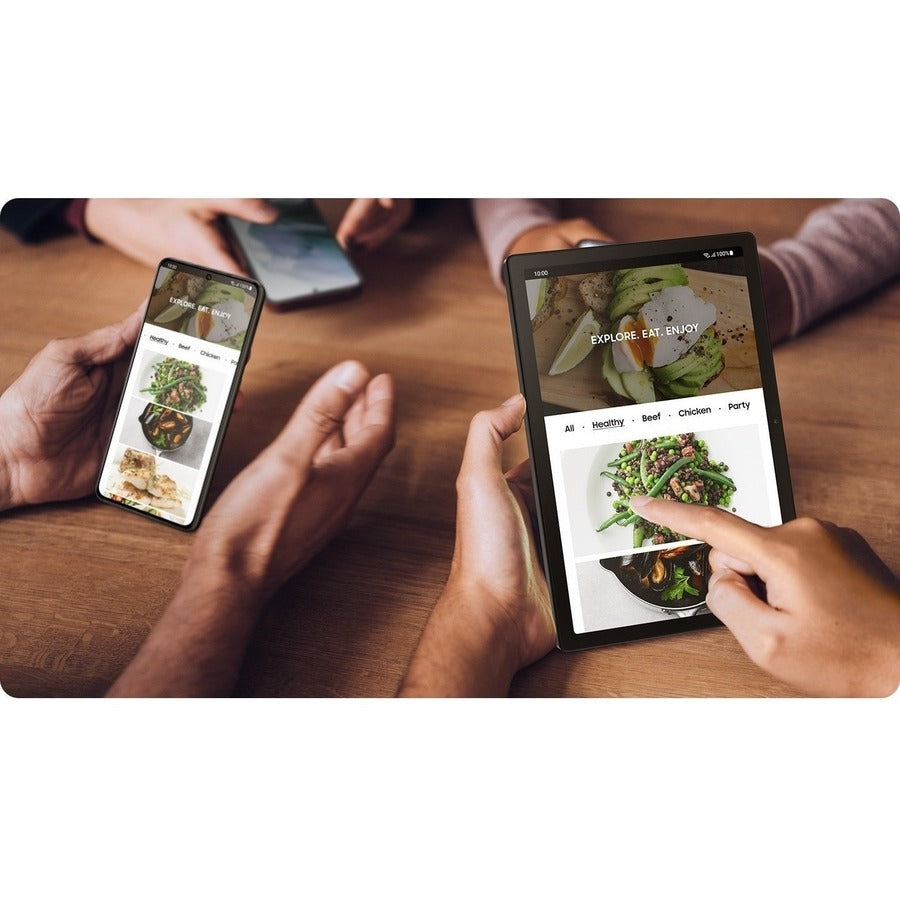 A bigger view to a broader world The 10.5” wide display, complete with symmetric bezel, measures only 10.2mm, so you can stay fully immersed in what’s on the screen. Explore epic films to how-to contents for a hobby you love, without compromise and enjoy a broader world through a bigger, better view with the Galaxy Tab A8.