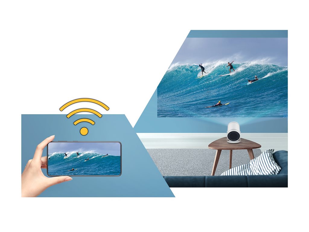 Samsung The Freestyle SP-LFF3CLAX - 2nd Generation - DLP projector - LED - portable - 230 ANSI lumens - Full HD (1920 x 1080) - 16:9 - 1080p - 802.11a/b/g/n/ac wireless / AirPlay 2 - white - with Samsung Gaming Hub