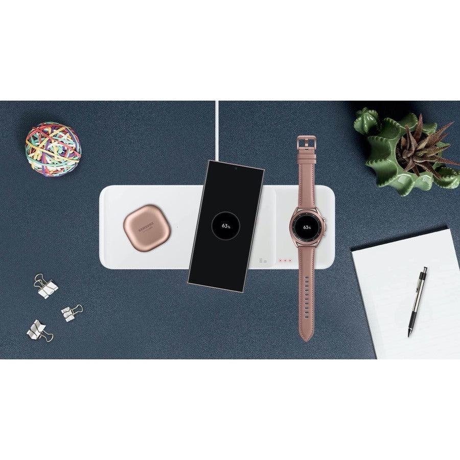 With room to hold three devices at once - a smartwatch and two phones, or a smartwatch, earbuds, and phone - you can power up your ecosystem all at once. So when you're done for the day, just put your devices down in one place to be ready for tomorrow.