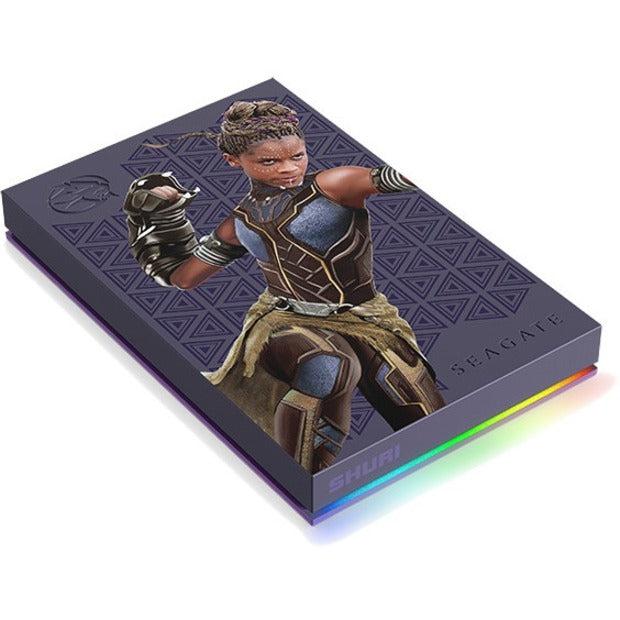 Honour the Princess of Wakanda and revel in the officially licensed Shuri Drive. The design of this Special Edition FireCuda External Hard Drive features the innovative style of Shuri while giving your collection a burst of colour thanks to cyan LED lighting. And with up to 2 TB of capacity, you can accumulate a wealth of games, files and media.