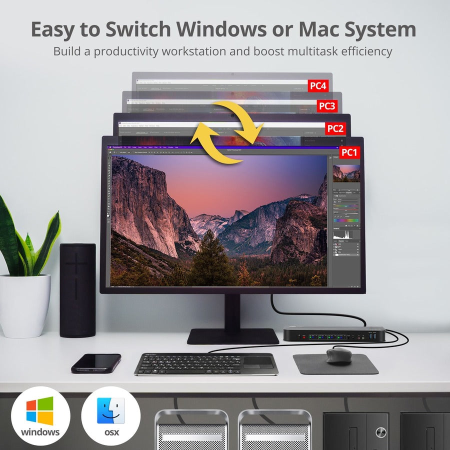 • 4x1 HDMI 4K HDR KVM USB 3.0 Switch with Remote Control