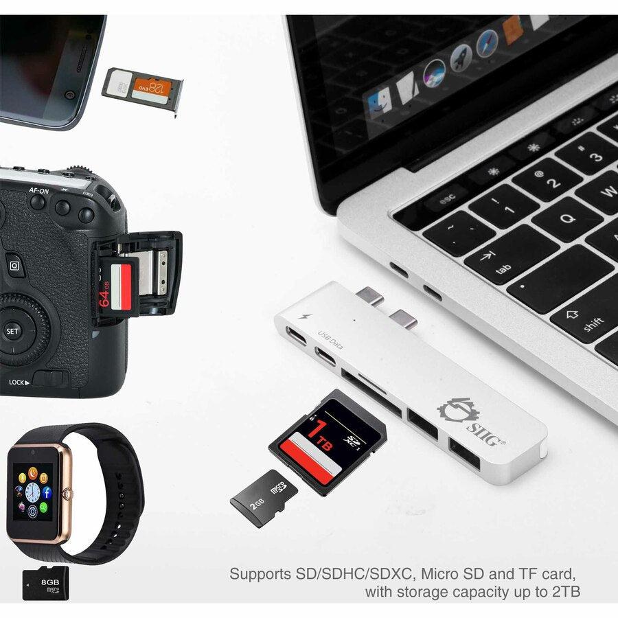 SIIG Thunderbolt 3 USB-C Hub with Card Reader & PD Adapter - Silver