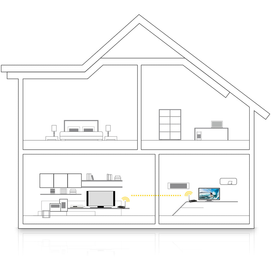 - Transmits HDMI A/V signals wirelessly up to 165ft through line-of-sight environment