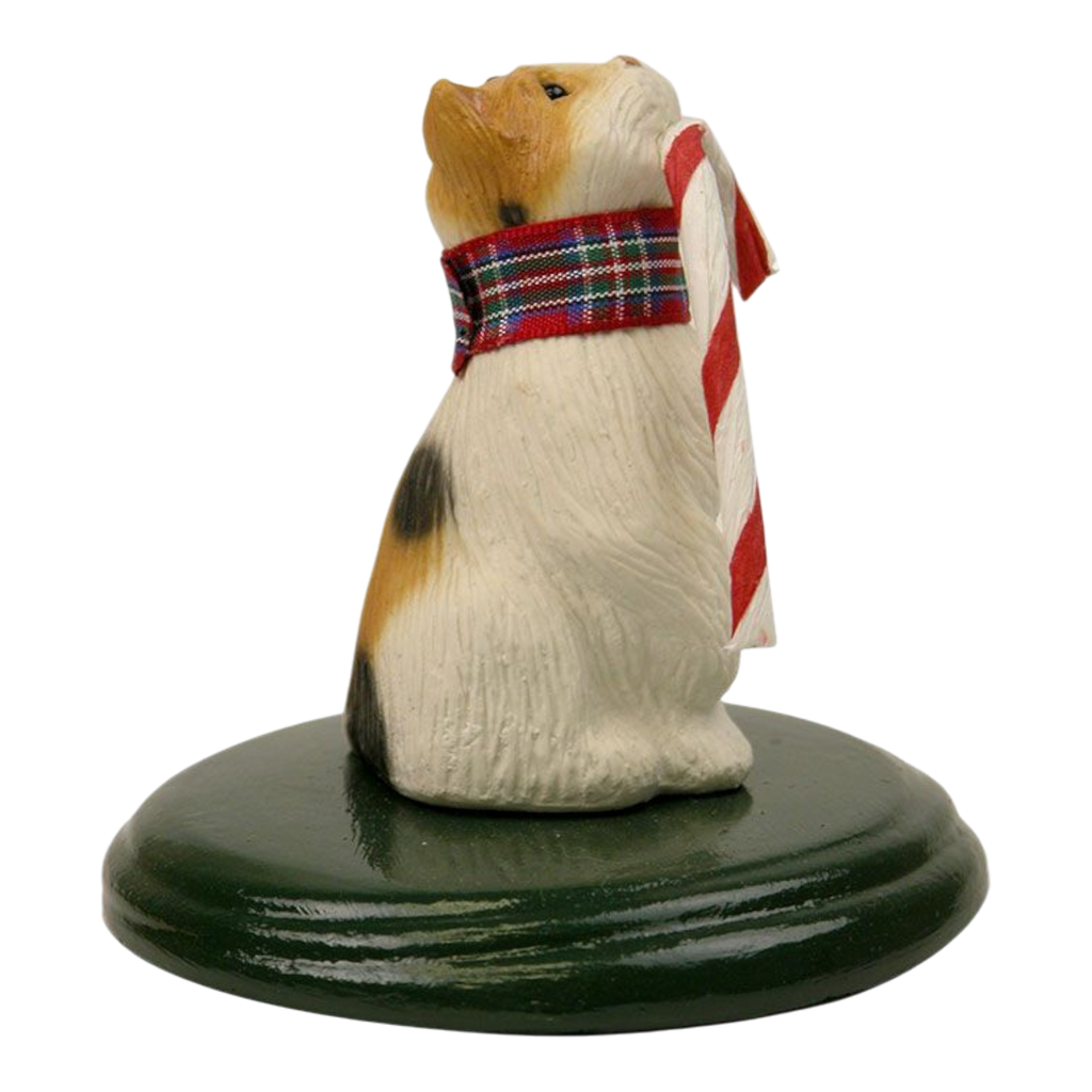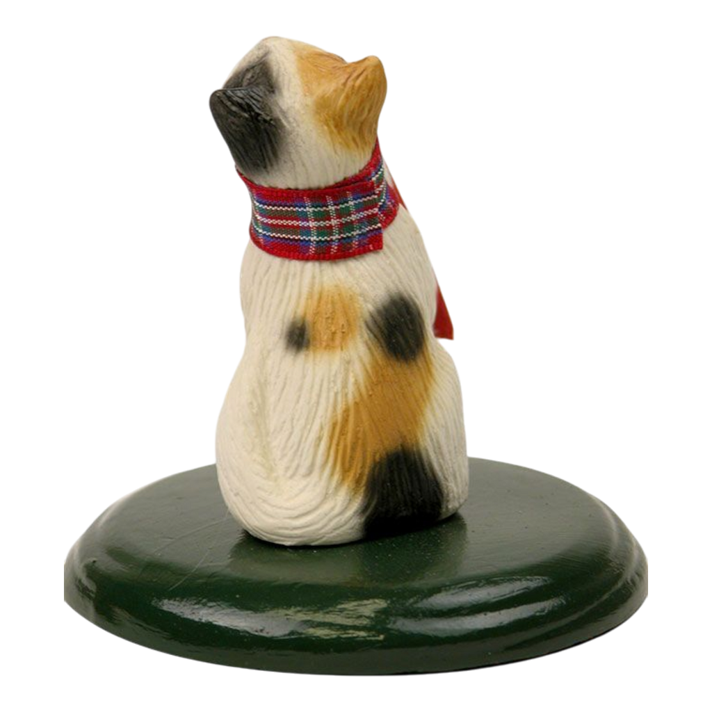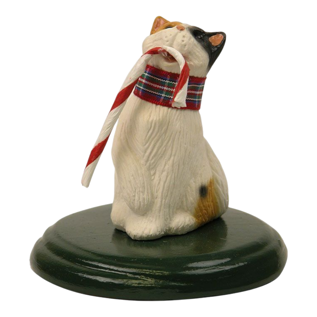 Bring some cheer to your home with this delightful Singing Cat - Calico figurine from Byers Choice. This endearing piece captures a charming calico cat adorned with a festive collar, happily munching on a striped candy cane. This whimsical decoration serves as a perfect addition to your holiday decor and will surely be a conversation starter during your festive gatherings. Cats have been revered in many cultures, symbolizing mystery and grace. It makes sense that this little feline is singing out loud, spreading joy and seasonal spirit just in time for Christmas!