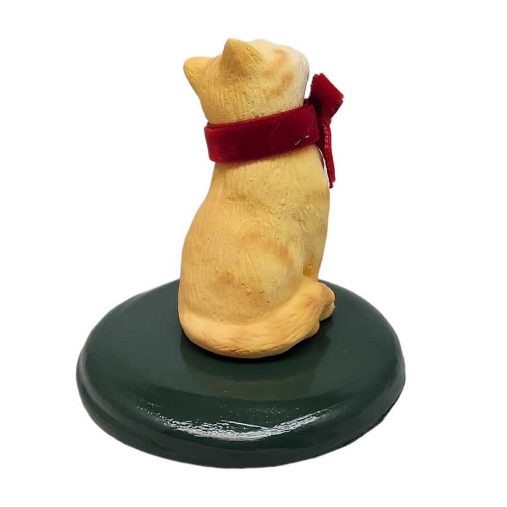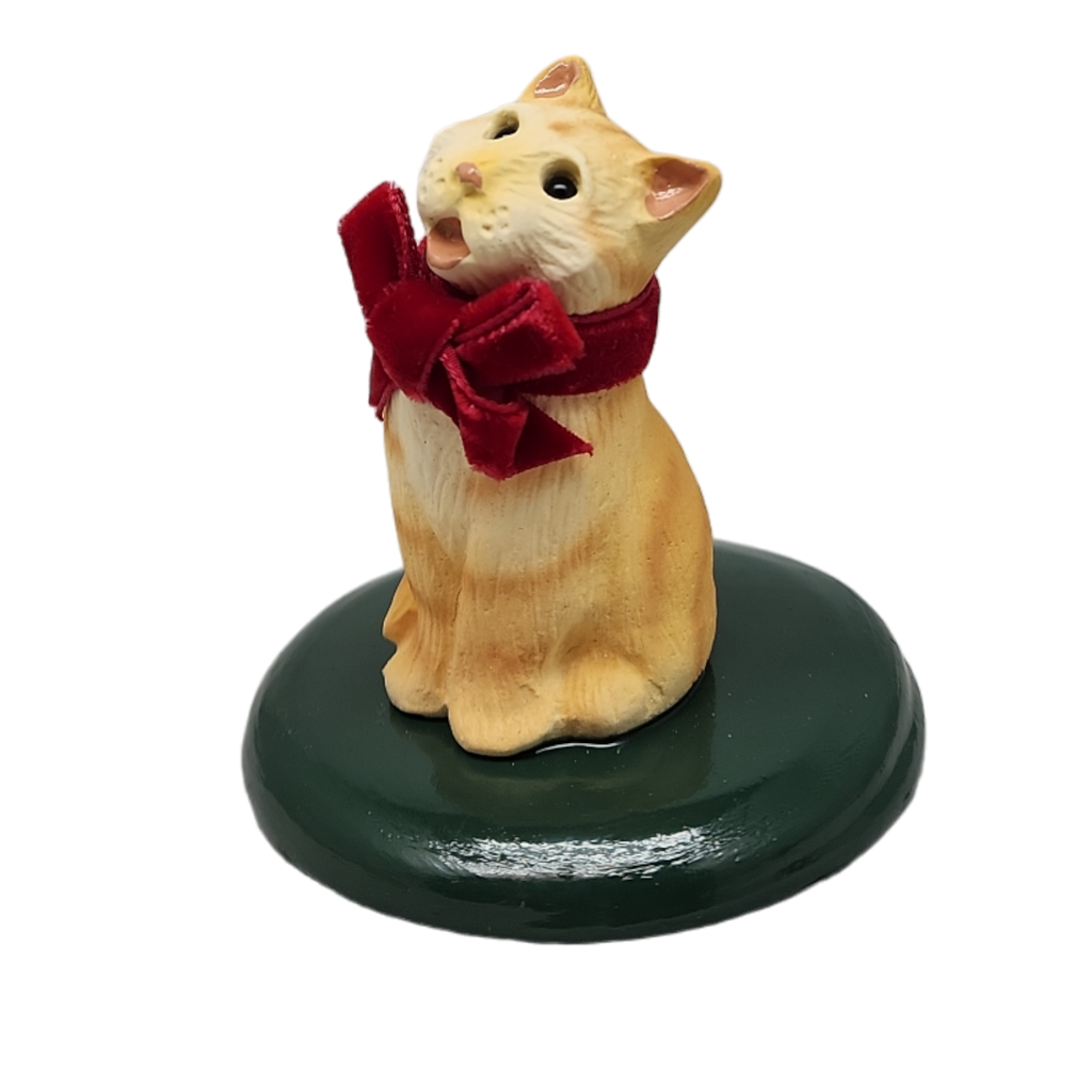 Add a whimsical touch to your holiday decor with the delightful Singing Cat - Orange Tabby figurine from Byers Choice! This charming collectible stands at 3.5 inches tall and features an adorable orange tabby cat wearing a festive red velvet bow. With its expressive face and playful demeanor, this little kitty seems to be singing in joy, perfectly capturing the spirit of the season.