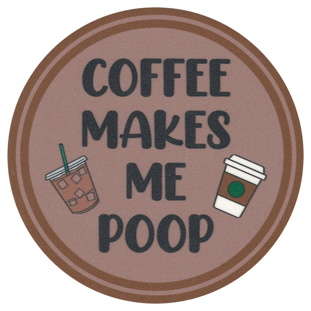 Bring some lighthearted fun to your coffee breaks with the Coffee Humor Coaster! Featuring the cheeky phrase, “Coffee Makes Me Poop,” along with adorable illustrations of a cold brew and a classic coffee cup, this design is perfect for any caffeine enthusiast who appreciates a good laugh. It’s an ideal addition to your kitchen or office, bringing smiles during National Coffee Day or any day when you need a little boost (and a chuckle) before tackling the morning!